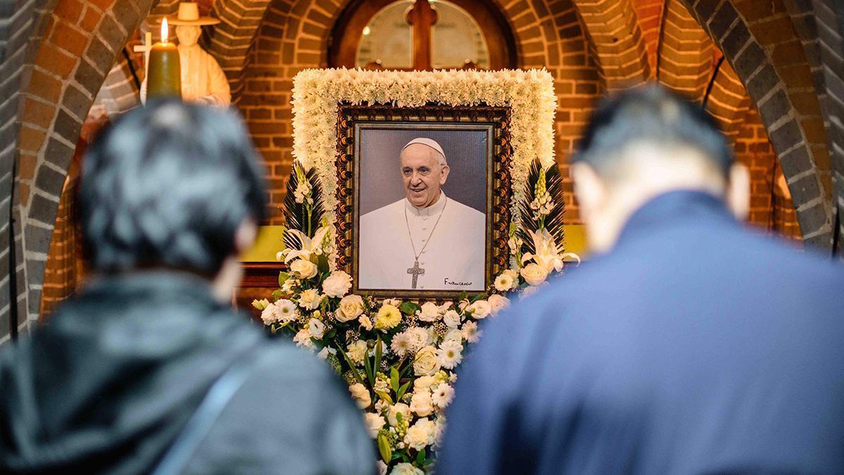 Ciudadanos muestran sus respetos al papa Francisco en la catedral de Myeongdong, en Seúl. / ANTHONY WALLACE / AFP