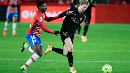 La metaformosi del Barça es podrà donar per completa quan sigui capaç de mostrar-se com un onze més sòlid i segur. Per no abandonar el calamitós costum de l’any pandèmic, a punt va estar d’encaixar primer. Igual que a Bilbao, seu de la primera remuntada com Déu mana. Una mala passada horitzontal de De Jong a Busquets (semblant a la de Messi a San Mamés) va deixar Antonio Puertas enfilant cap a Ter Stegen. Una mà de l’alemany va evitar la desgràcia acostumada i va donar temps als seus companys que agafessin l’aire al partit. No era fàcil davant un Granada d’empenta i peu fort, envalentit pel seu bon moment esportiu, fent-se amb les altes esferes, també les europees, i amb el record del 2-0 de l’última Lliga. D’aquell onze del Barça només repetien Griezmann i De Jong.