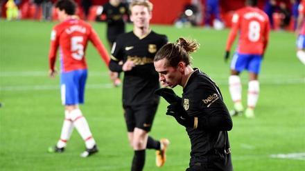 No pintava bé el partit en la incertesa de la fase inicial, però l’esquiva sort dels blaugranes ha canviat amb el full del calendari: un pèssim rebuig de Soldado va convertir en bona la posició antireglamentària de Griezmann, sol davant el porter del Granada.