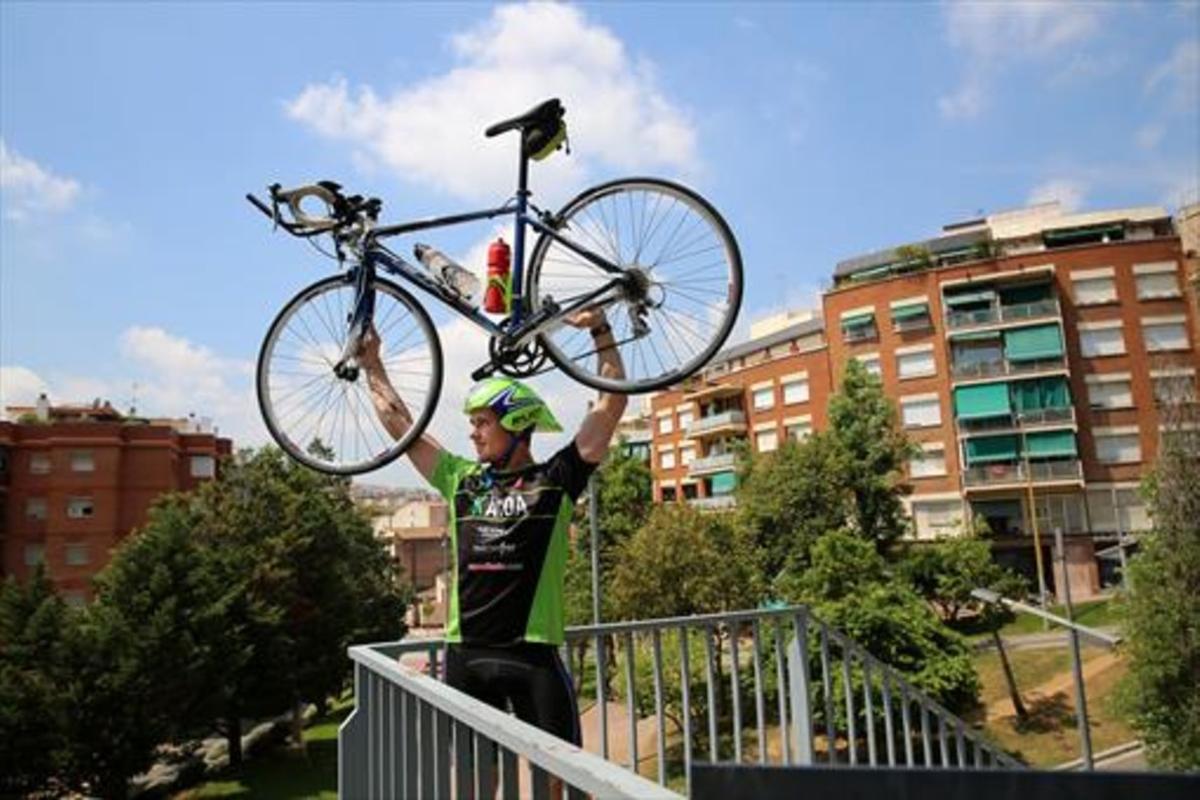 D’Horta 8 Gallardo aixeca la seva bicicleta amb el seu barri de fons. /