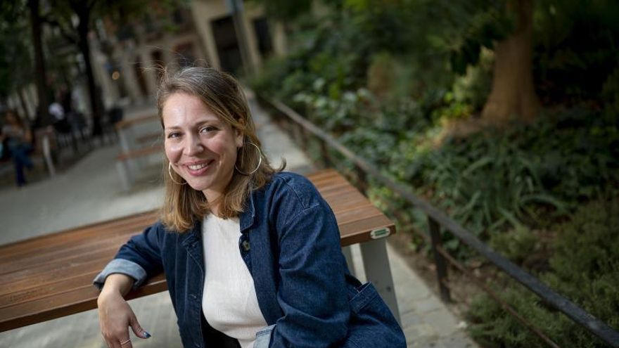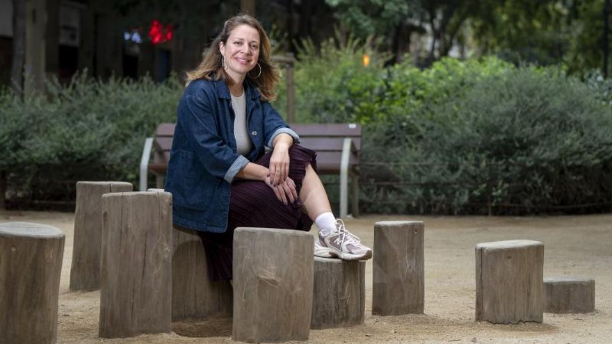 Janet Sanz, todavía presidenta de Barcelona en Comú en el Ayuntamiento de Barcelona, el pasado martes, en el eje verde de Rocafort con Consell de Cent. /