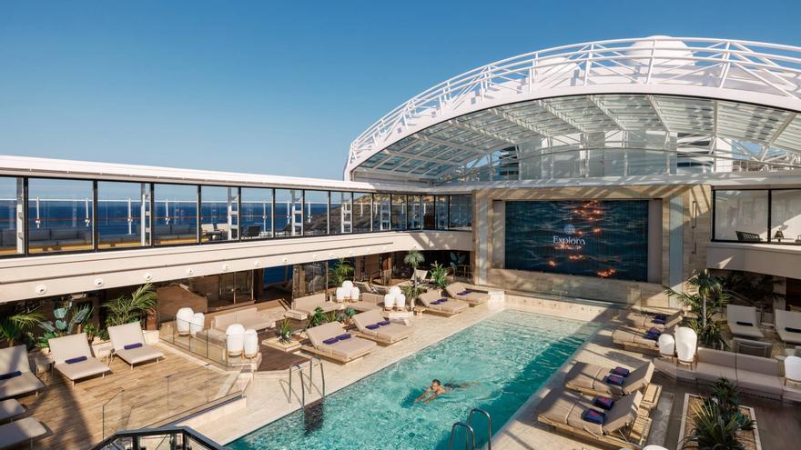 Una de les piscines dels vaixells d’Explora Journeys, on també es pot veure cine a la fresca. /