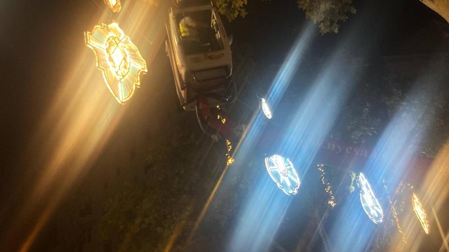 Un operari en grua comprova els nous llums de Nadal de l’avinguda Diagonal, a Barcelona. /