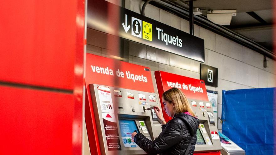 Una dona compra el seu títol de transport en una màquina expenedora de TMB. /