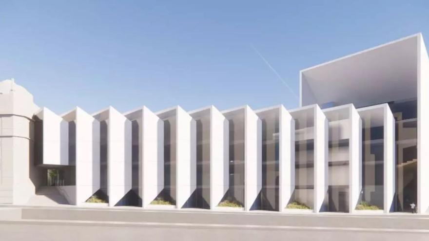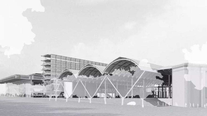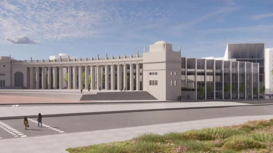 El pati de columnes del palau del Vestit s’obrirà per deixar pas a un porxo que precedirà una esplanada amb zona verda. Donarà accés a un edifici d’oficines que es construirà després de la demolició parcial de part de l’immoble actual. Es destinen 14.500 metres quadrats a usos terciaris i 1.500 a un equipament "vinculat a l’ús de desenvolupament econòmic". Es compta afegir 1.100 metres quadrats per a unes dependències públiques del Poble-sec i 508 més de caràcter sociocultural.