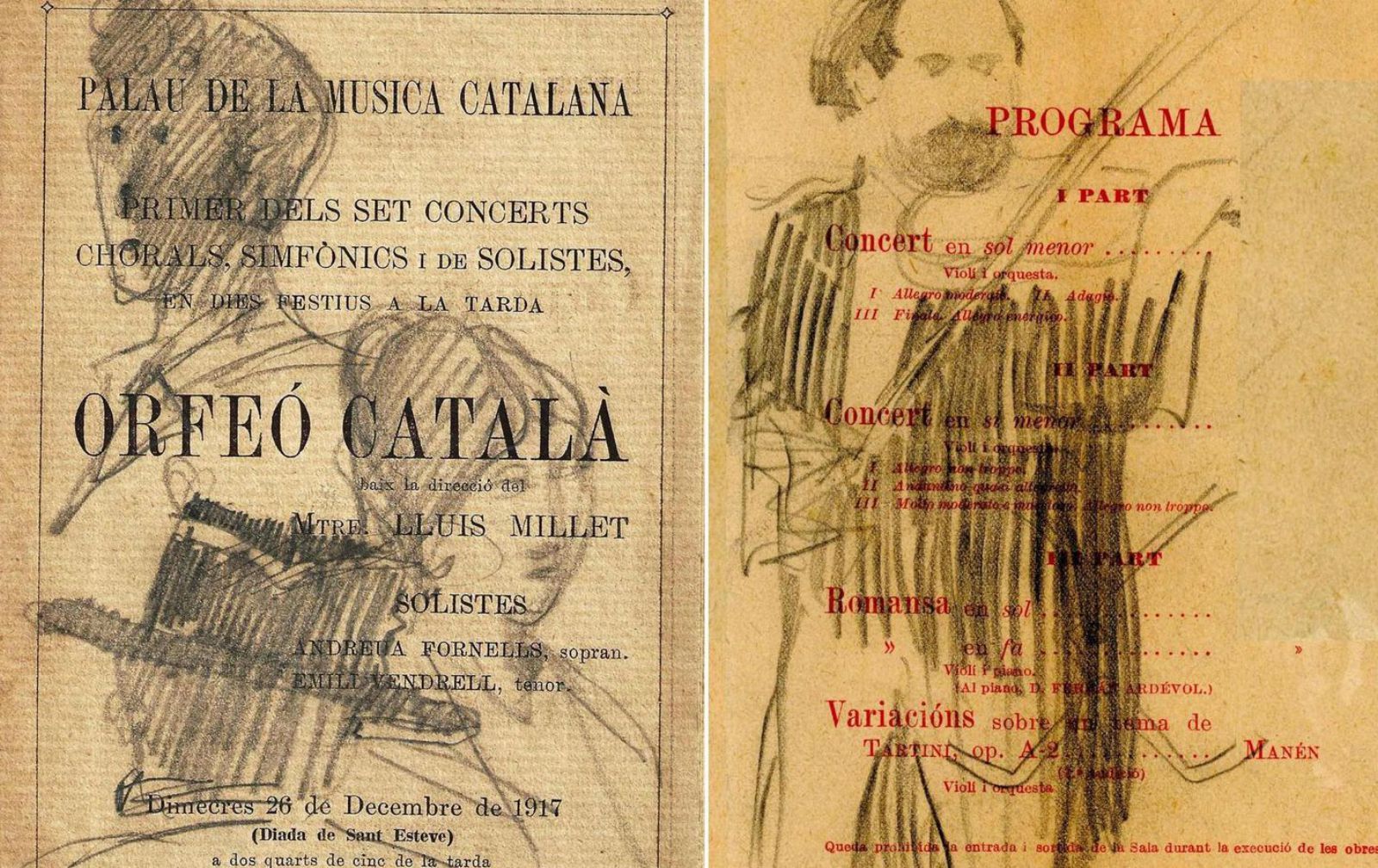 Dibuixos fets a mà per l’arquitecte en un programa del Palau de la Música de desembre del 1917. /