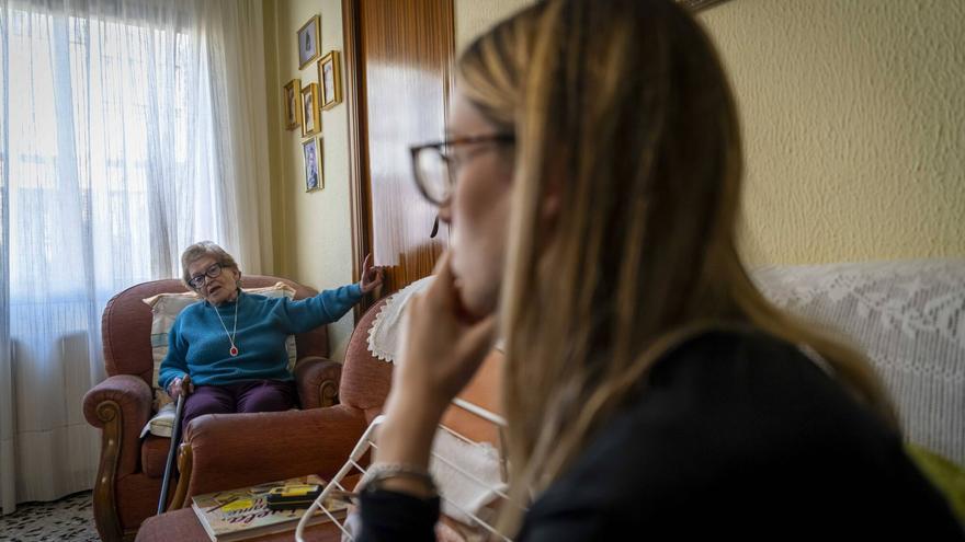 Berta Debés, en primer pla, amb la seva àvia Gabriela Jiménez al fons. /