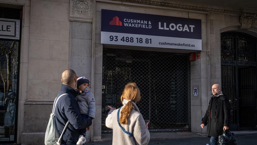 La botiga tancada de la perfumeria Regia, amb un cartell de «llogat», el gener del 2026 /