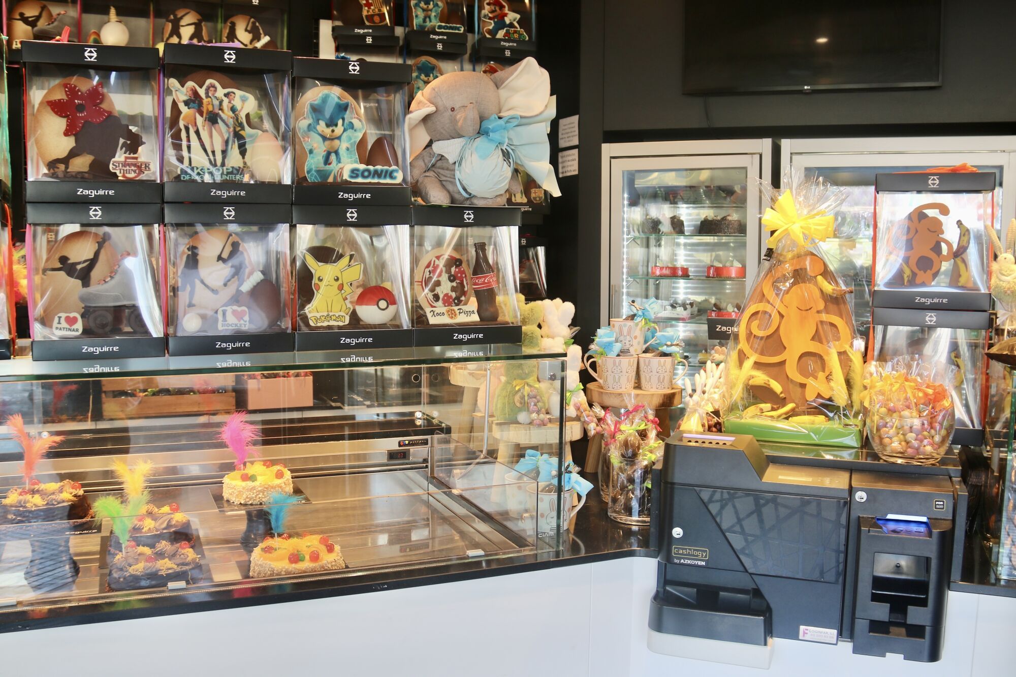 Aparador de la pastisseria Zaguirre de Terrassa amb diverses mones de Pasqua exposades /