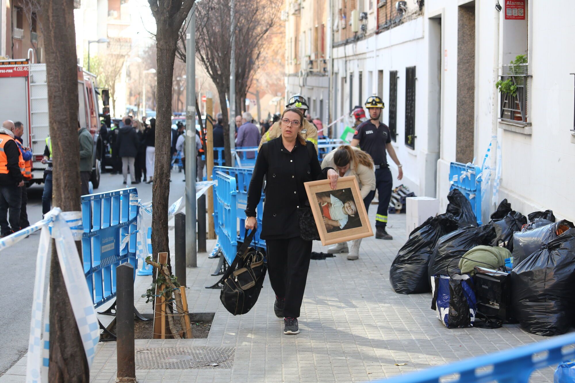 Evacuació preventiva dels veïns del bloc contigu a Canigó, 9, que es va esfondrar una setmana abans. /