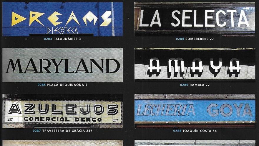 Serveix com a exemple aquesta pàgina treta a l’atzar del llibre que América Sánchez va treure a la venda l’any 2001,Barcelona gráfica’. El volum mostra 1.834 peces interessants del paisatge quotidià de la ciutat. En aquesta pàgina n’apareixen 16. Dotze ja no existeixen, dues han sigut modificades i només dues han sobreviscut.