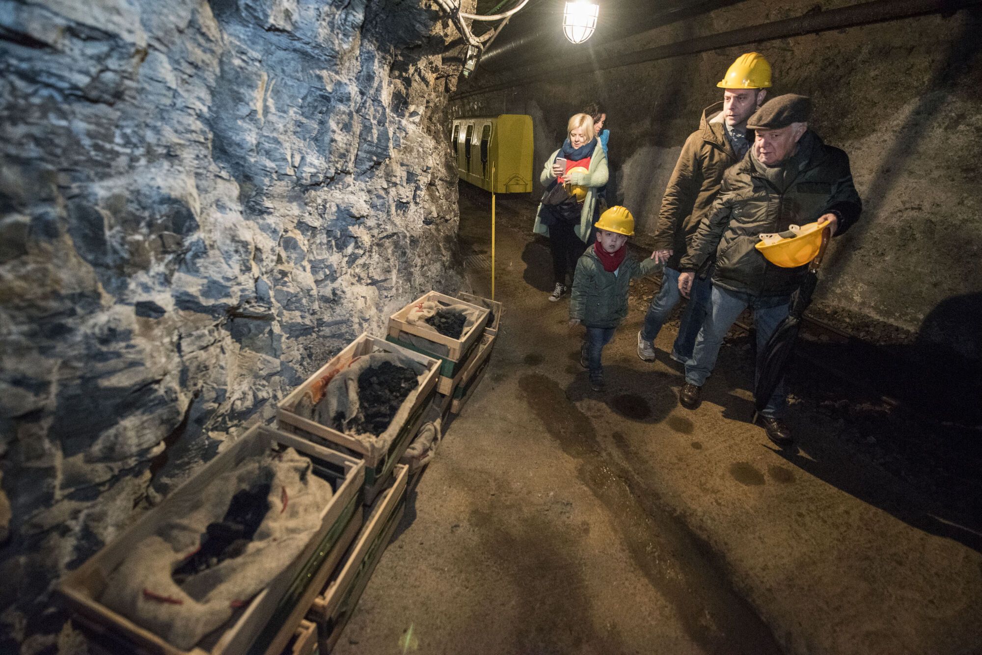 La segona fase de l’itinerari és una visita guiada a peu per l’interior de la muntanya cap a l’exterior, mentre el guia explica els processos d’extracció del carbó.