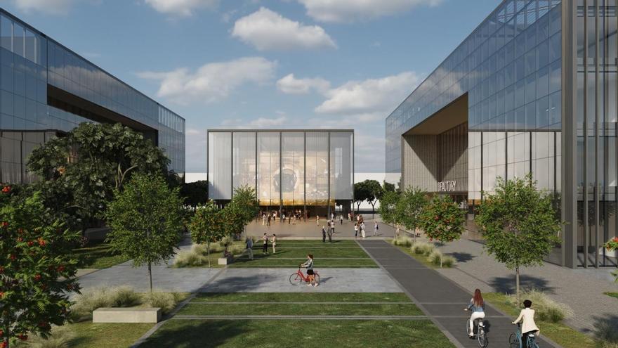 Simulació del futur complex d’edificis que acompanyaran el DFactory Barcelona /