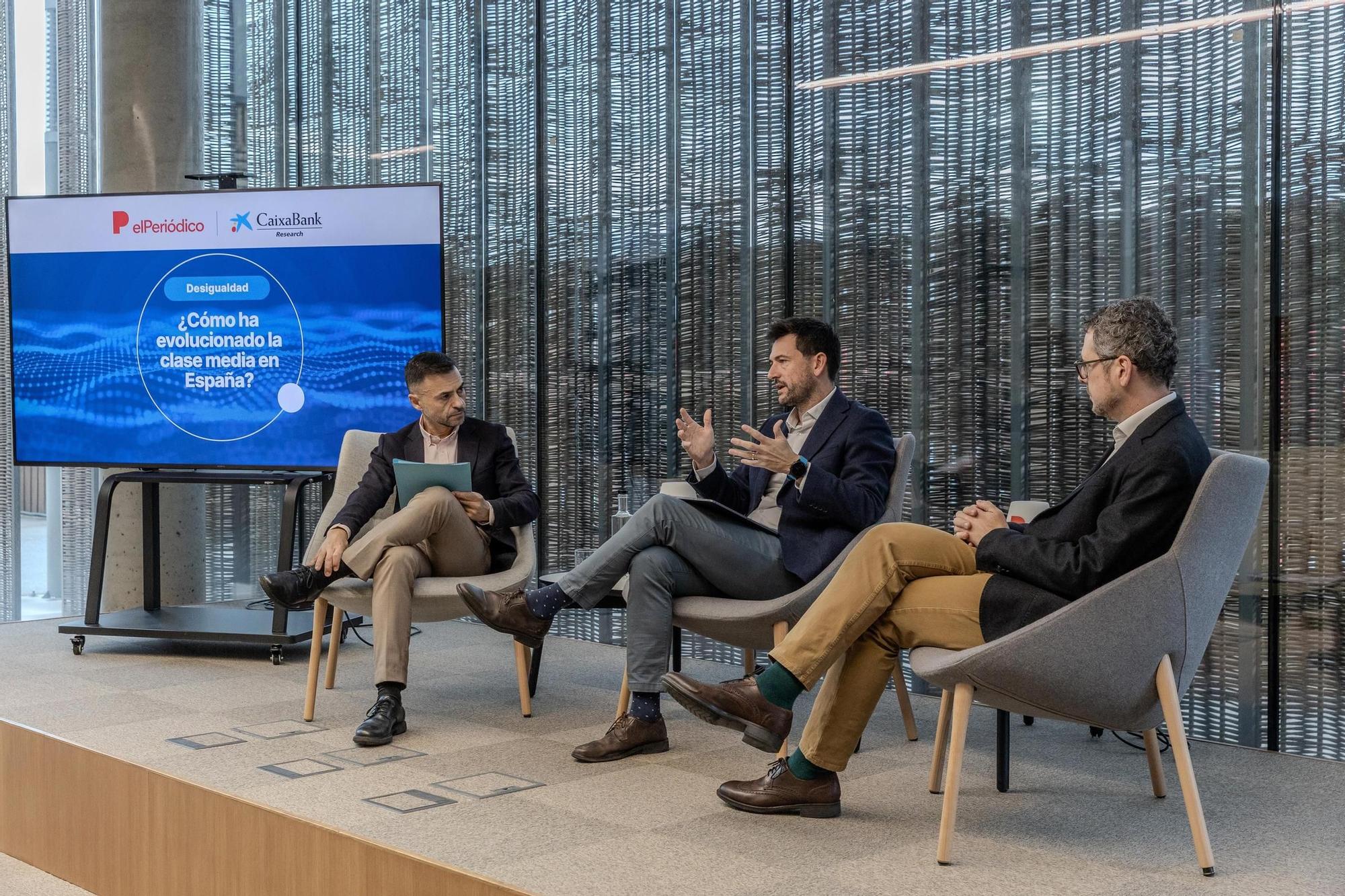 La desigualtat econòmica és una de les grans preocupacions dels ciutadans europeus (un 81% de la ciutadania creu que hi ha molta disparitat en els ingressos, segons l’Eurobaròmetre). Però com van indicar Mestres i Aspachs a la taula rodona, a Espanya, malgrat la reducció continuada de la desigualtat, també existeix aquesta percepció social que la classe mitjana és cada vegada més feble.