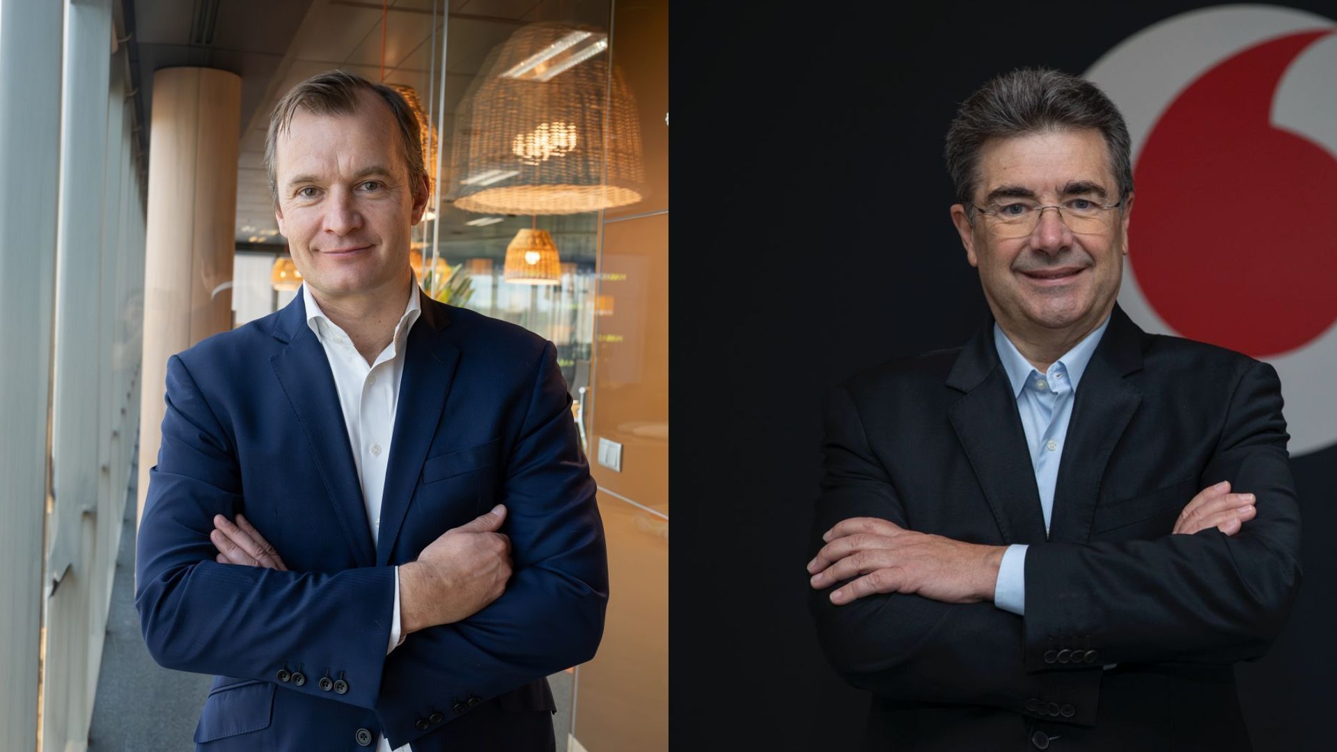 El conseller delegat de MasOrange, Meinrad Spenger, i el conseller delegat de Vodafone España, José Miguel García. /