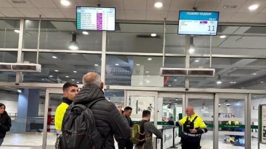 Un grup de viatgers a l’estació d’alta velocitat de Girona. /