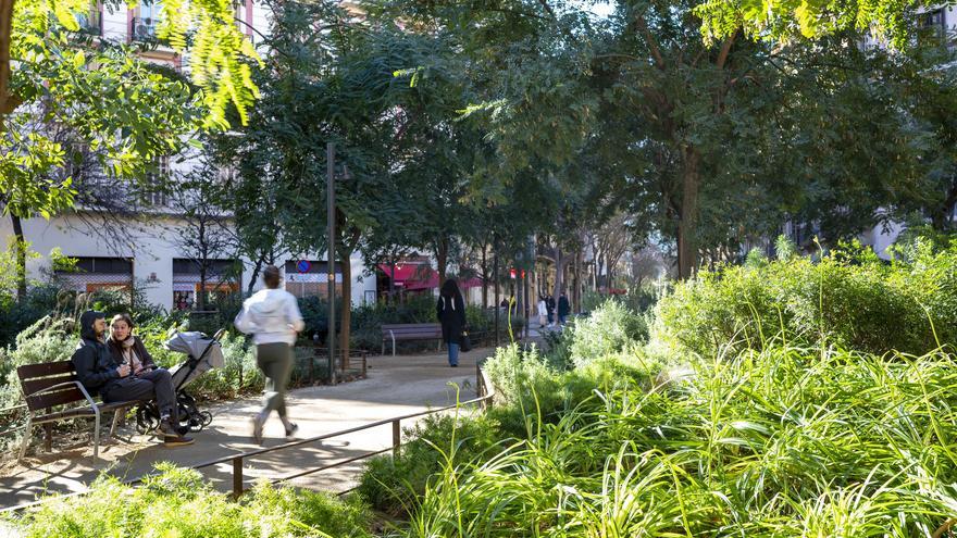 L’encreuament de Rocafort amb Consell de Cent, un dels punts més frondosos dels eixos verds. /