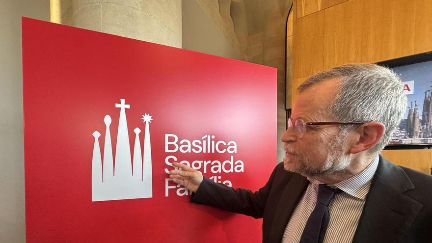 Jordi Faulí, director de les obres, mostra el nou logotip de la Sagrada Família /