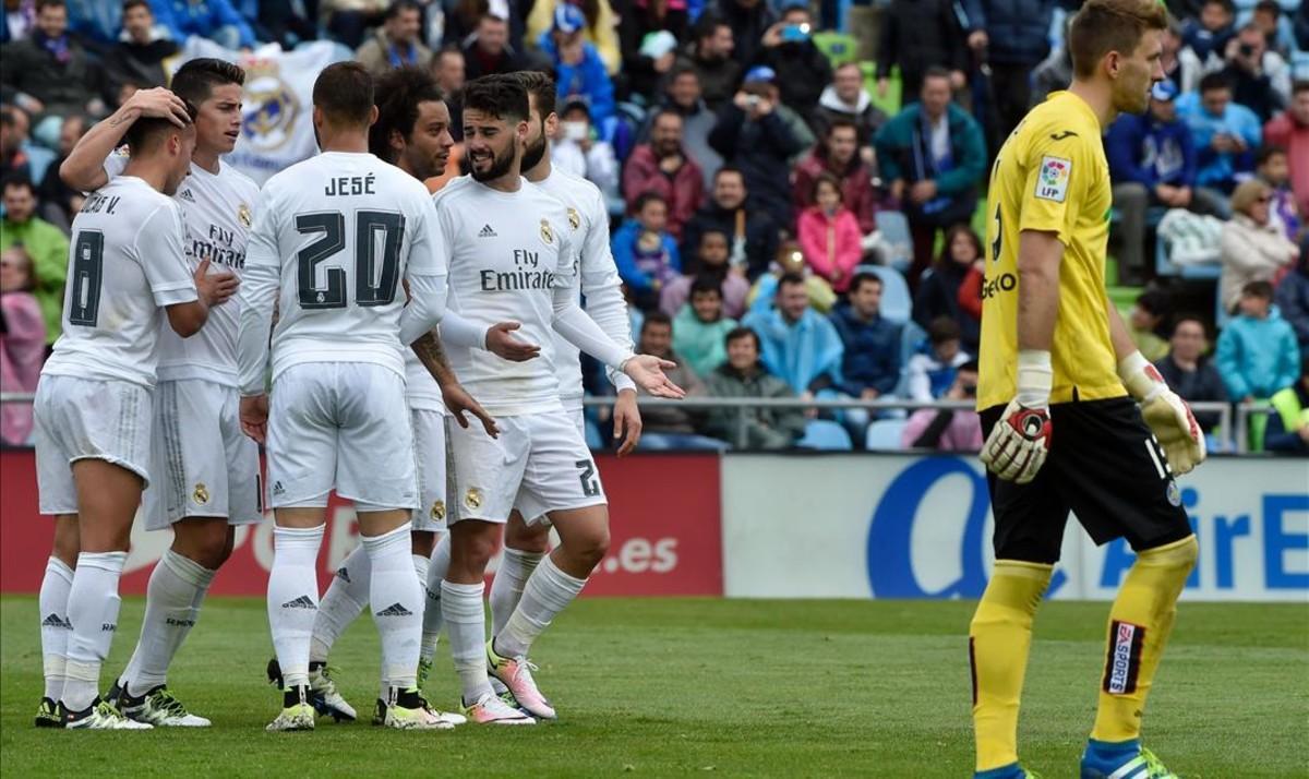 El sud de Madrid, territori del Getafe, ha sigut terreny adobat per a un equip que no només ha reobert el llibre de la Lliga sinó que es permet discutir-li les coses als dos primers del podi. De moment, el conjunt blanc se'n va al llit segon, amb dos punts d'avantatge sobre l'Atlètic i a només un del Barcelona. Tot gràcies a una còmoda golejada al Coliseum (1-5) davant un rival que segueix a la corda fluixa i que s'ha desmuntat només de trepitjar la gespa.