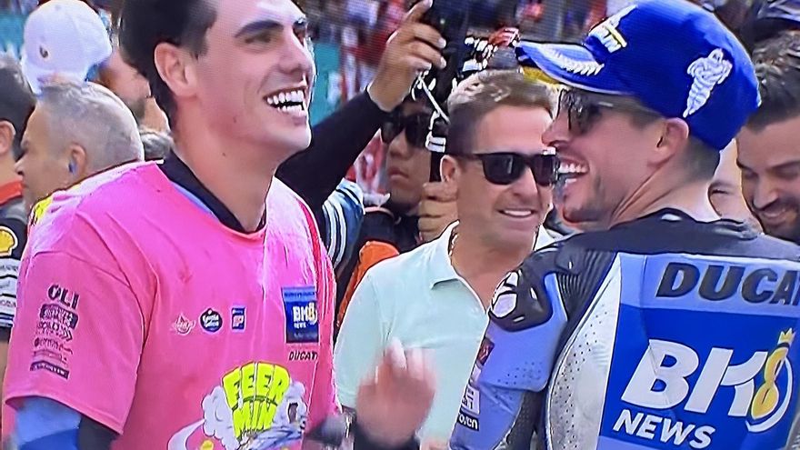 Per això el pare Julià va fer una videotrucada amb el seu mòbil a Marc, des del podi de l’esprint, per compartir un èxit tan gran i llançar un munt de petons a l’aire, mentre Àlex reconeixia haver viscut «una de les carreres amb més nervis de la meva vida, ja que, per a mi, per als Márquez Alentà, per a la família Gresini i per a Ducati, aquest subcampionat era molt important i, tot i que ja ho teníem entre els dits, no veia el moment de celebrar-ho».