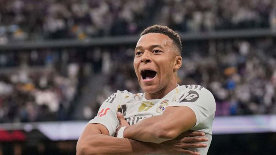 Mbappé celebra el seu gol en el triomf d’ahir del Reial Madrid contra el Barça. | AFP7 /
