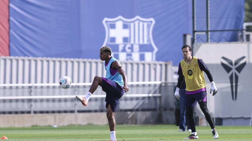 Lamine Yamal i Wojciech Szczesny, durant l’últim entrenament. /