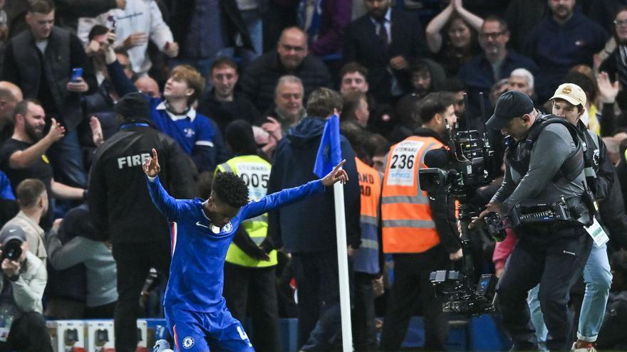 Estevao celebra efusivament un gol amb la samarreta del Chelsea. /