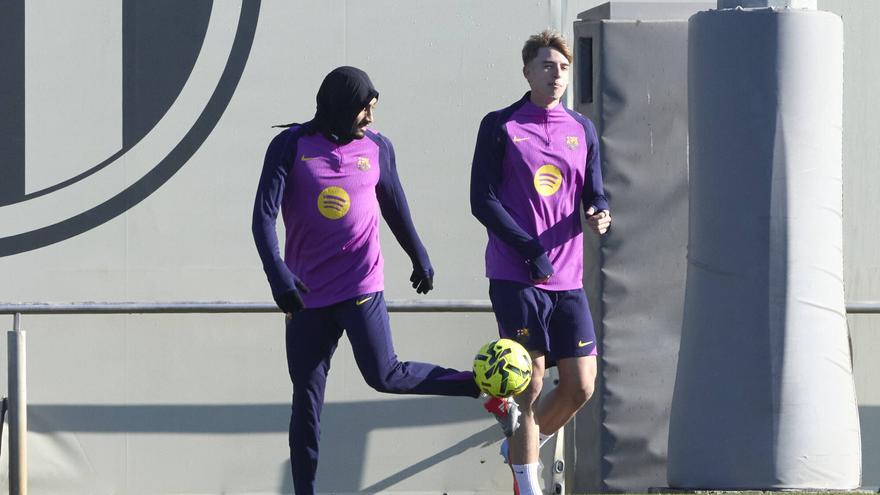 Raphinha, tapat, al costat del planter Tommy Marqués. /