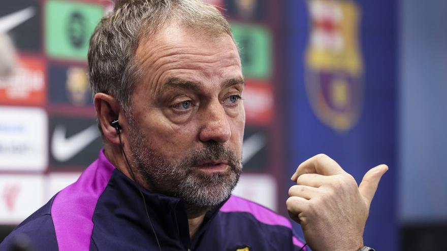 Hansi Flick, en la rueda de prensa de Sant Joan Despí. /