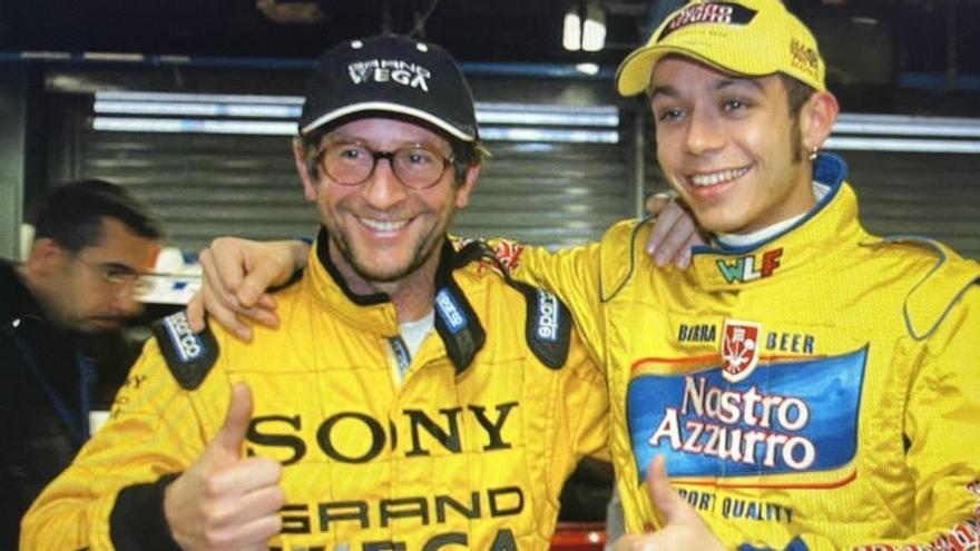 Graziano Rossi i el seu fill Valentino fan broma abans de compartir un cotxe en una cursa. /