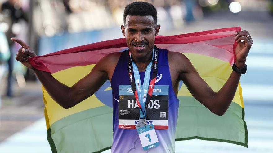 Embotit en un anorac de plomes, un nen esprintava amb tota la seva ànima per intentar emular, per uns metres, Hagos Gebrhiwet, que amb la seva poderosa gambada va decidir llançar-se en solitari abans de depassar els primers cinc quilòmetres de la Mitja Marató de Barcelona 2026. L’etíop somiava superar el rècord impossible de Jacob Kiplimo (56:42), no homologat finalment per la World Athletics a causa del rebuf que hauria rebut del cotxe de carrera. I semblava desafiar-los, a ell i al plusmarquista oficial Kejelcha (57:30), tot i que l’últim tram per l’avinguda Litoral va acabar per allunyar-lo, i va creuar la meta en 58:04 minuts. Eufòrica estava la kenyana Loice Chemnung, amb el dorsal posterior gairebé desenganxat, capaç de vèncer i de batre el rècord femení del circuit amb una marca d’1:04:01, gairebé dos minuts menys que la seva anterior marca personal.
