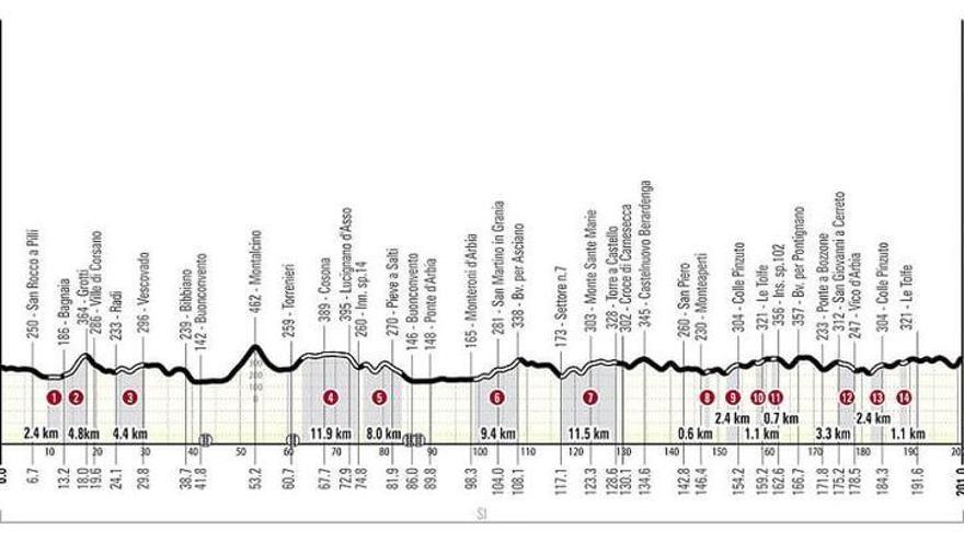 De fet, si s’observa la Strade Bianche d’aquest any es veu que està una mica més suavitzada que en edicions anteriors, potser serà més ràpida i una mica menys exigent, però amb l’únic exponent d’anotar el nom de Pogacar com a vencedor per quarta vegada, llevat de sorpresa tan monumental com la plaça del Camp, a Siena, on acaba la carrera.