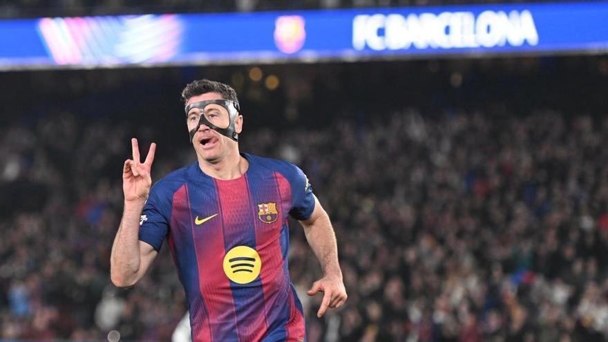 Va tenir, a més, Lewandowski calma i paciència abans de deixar anar la dreta del 6-2, un altre senyal que alguna cosa havia canviat al seu cap. I en el seu futbol. Fins i tot es va treure la màscara ensenyant a un embogit Camp Nou el rostre i amb dos dits a la mà dreta exhibint la recompensa que tant buscava. Quatre rematades, tres a porta i dos gols. O sigui, el vell i precís Lewandowski.