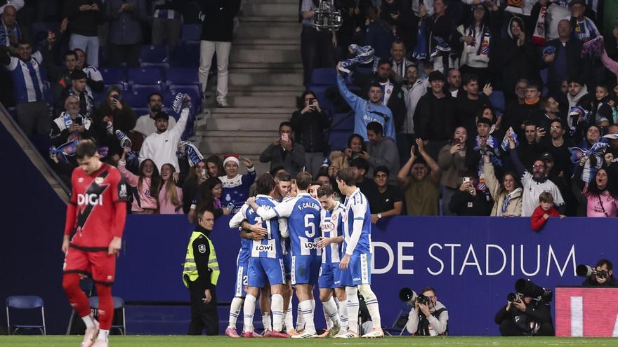 Els jugadors de l’Espanyol celebren l’última victòria a casa davant el Rayo, el 7 de desembre passat. /