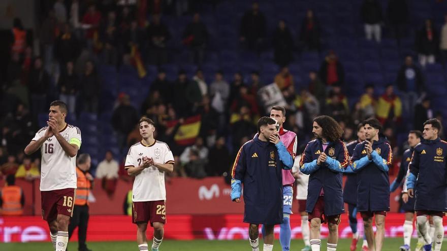 Els jugadors de la selecció, després de l’Espanya-Egipte. /