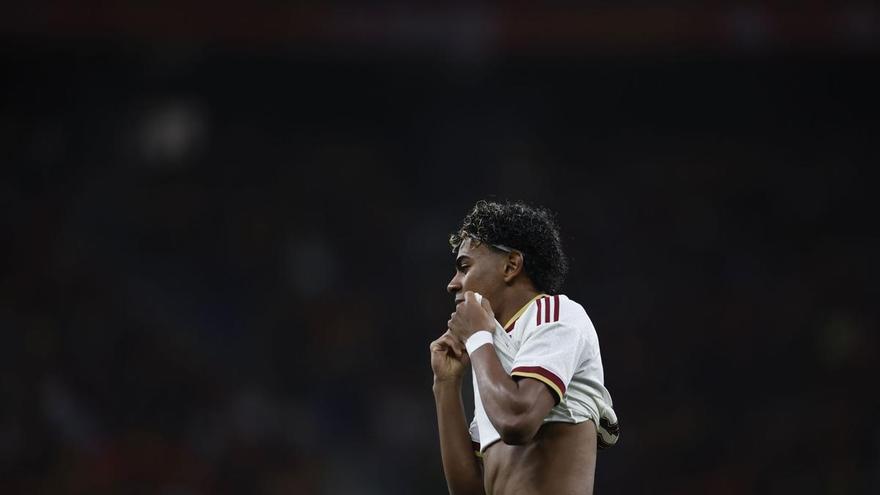 El davanter de la selecció espanyola de futbol Lamine Yamal, durant el partit amistós entre les seleccions d’Espanya i Egipte. /