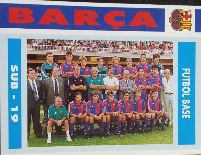 Estañol, l'últim de dalt, en un cromo de la plantilla del Barça sub19 del curs 1992-93 /