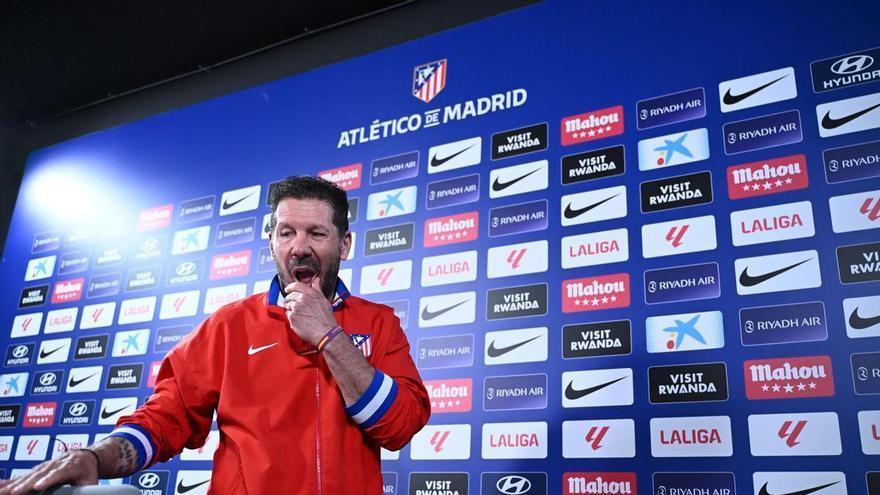 Diego Pablo Simeone surt de la roda de premsa d’aquest divendres a Majadahonda davant de l’Atlètic-Barça. /