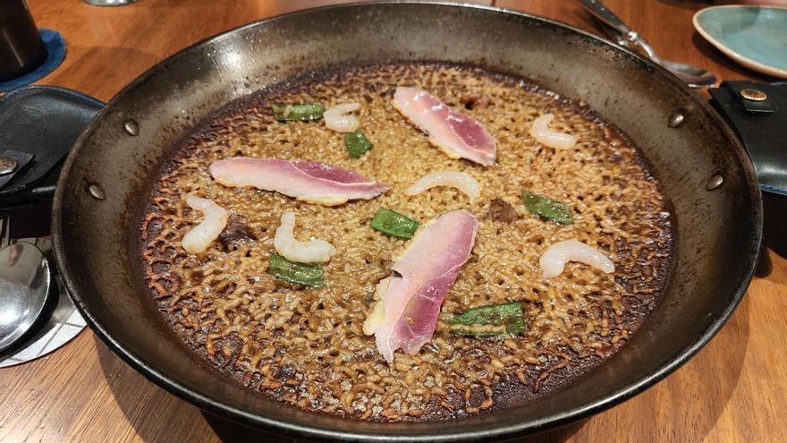 La paella de gambes i ànec de Cruix en col·laboració amb Suculent. /