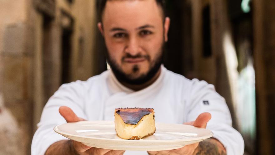 Jon García, creador de Jon Cake, amb un dels seus pastissos de formatge. /