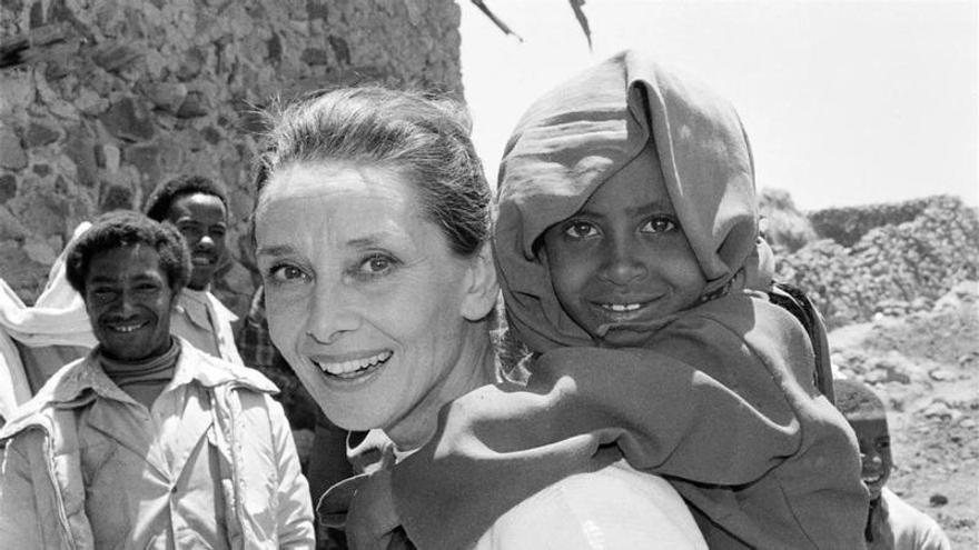 Audrey Hepburn, en un dels seus projectes a l’Àfrica amb l’Unicef, organització de la qual ella va ser la primera ambaixadora femenina. /