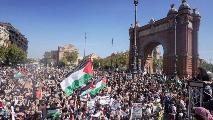 Clamor a Barcelona per exigir el final dels atacs contra la població de Gaza i mostrar solidaritat amb la flotilla humanitària. Unes 70.000 persones segons la Guàrdia Urbana i 300.000 segons els organitzadors s’han manifestat al centre de la ciutat, entre els Jardinets de Gràcia i l’Arc de Triomf, amb proclames com «free Palestine» i «boicot a Israel», a més de mostrar banderes palestines i altres pancartes en què s’atacava el règim de Benjamin Netanyahu pels seus atacs a Gaza.