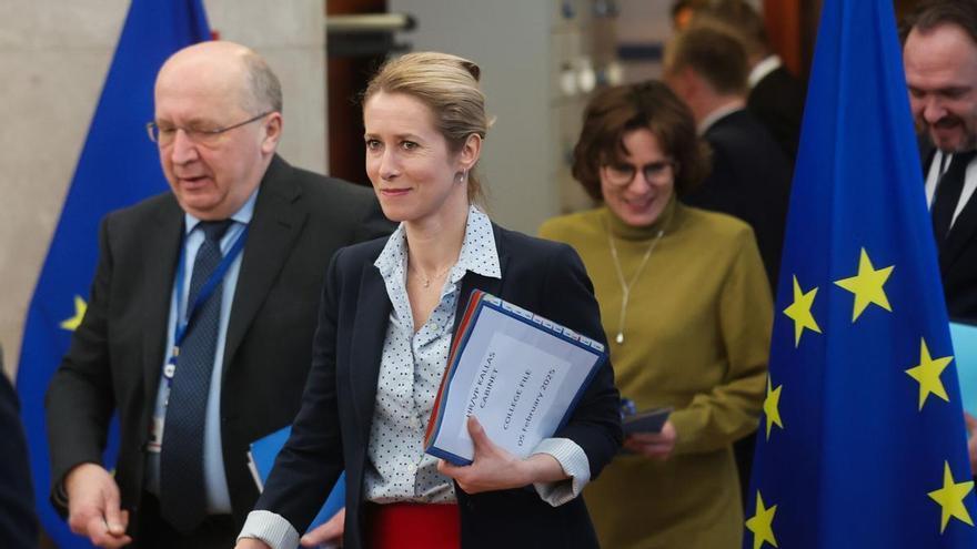 L’alta representant de la UE per a Afers Exteriors i Política de Seguretat i vicepresidenta, Kaja Kallas, i el comissari europeu de Defensa i Espai, Andrius Kubilius, arriben a Brussel·les per assistir a una reunió del Col·legi de Comissaris /