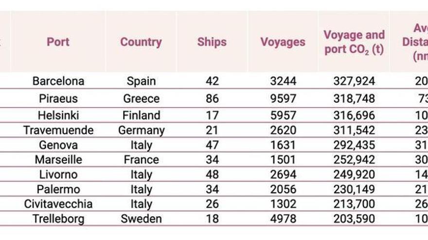 El de Barcelona és el port europeu amb els ferris que emeten més contaminació per CO2, mentre que el de Las Palmas és el segon per emissions d’òxids de sofre (SOx). Algesires i Santa Cruz de Tenerife figuren també entre els 10 ports que més SOx emeten a tota la Unió Europea. Aquesta és una de les conclusions de l’estudi que acaba de divulgar el consorci europeu Transport and Environment (T&E), que monitoritza l’impacte ambiental del transport. A diferència d’estudis anteriors, aquesta vegada T&E s’ha centrat exclusivament en l’impacte dels vaixells de passatgers.