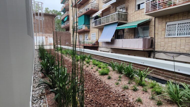 La implantació de verd en aquests espais, que va a càrrec de l’Institut Municipal de Paisatge Urbà i l’Institut Municipal d’Educació de Barcelona (IMEB), inclou diversitat d’espècies vegetals per tal d’afavorir la biodiversitat i evitar el monocultiu.
