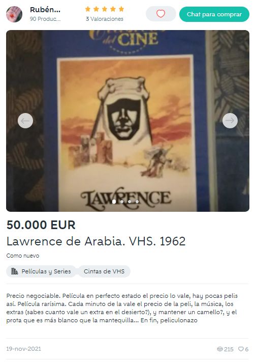 «És un format mort, però ens és igual. Els 5.000 euros que et pot costar una cinta compensen si et torna un trosset de la teva vida». Tot i que satisfer aquesta necessitat, en ocasions, pot arribar a ser especialment complicat. O, més ben dit, costós: a la plataforma Esty és possible localitzar un exemplar de La sirenita (1989) que supera els 36.866 euros. O un d’El rey león (1994) que arriba als 47.402 euros. No obstant, no tot és Disney. Lawrence d'Aràbia (1962), per exemple, està disponible per la barbaritat de 50.000 euros.