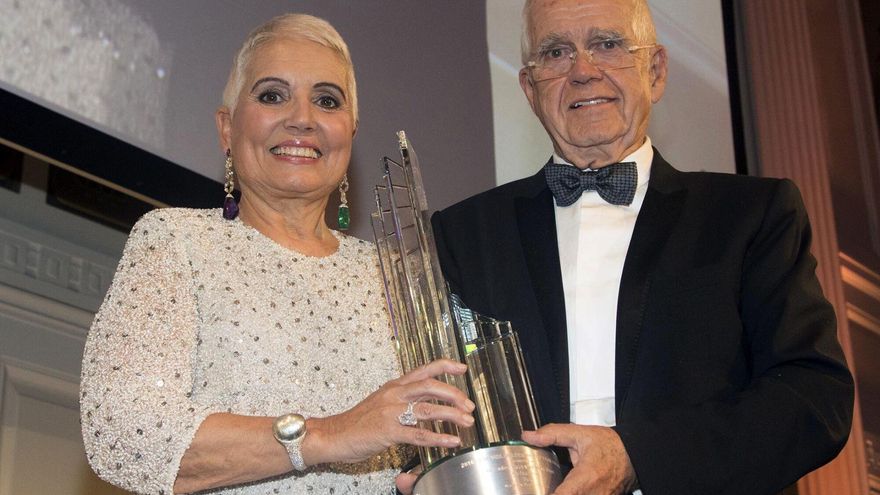Salvadot Tous i la seva dona Rosa Oriol, després de rebre el premi Líders de Negocis de l’any 2016, atorgat per la Cambra de Comerç Espanya-EUA, el 13 d’octubre del 2016, a Nova York. /