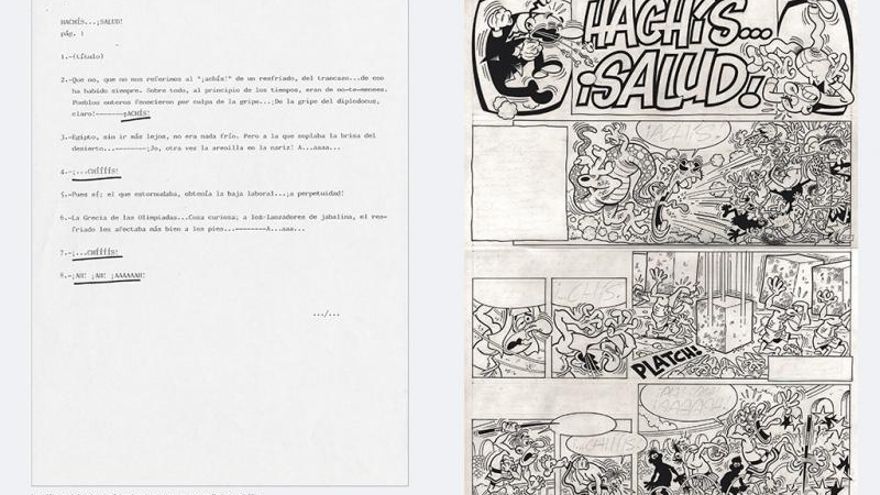 En aquell moment, 80 anys acabats de complir, Ibáñez facturava fins a tres historietes a l’any, però l’èxit d’‘El tesorero’ i ‘¡Elecciones!’ va trastocar qualsevol previsió i va retardar entre tres i quatre anys les dates de publicació d’altres títols com ‘Por el Olimpo ese’, ‘Misterio en el Hipermercado’ i ‘Miseria, la Bacteria!’. Cap d’aquests, no obstant, va córrer la (mala) sort de ‘¡Haixix… ¡Salut!’, còmic que ni tan sols la seva família sabia que existia. Va ser l’editorial, de fet, la que va avisar que per allà quedava un Mortadel·lo llest per enviar a impremta. «Per mi va ser com trobar un valuós tresor: es repetia la mateixa sensació que vaig experimentar al veure les pàgines inacabades de ‘París 2024’ sobre el seu tauler de dibuix’, assegura Nuria Ibáñez.