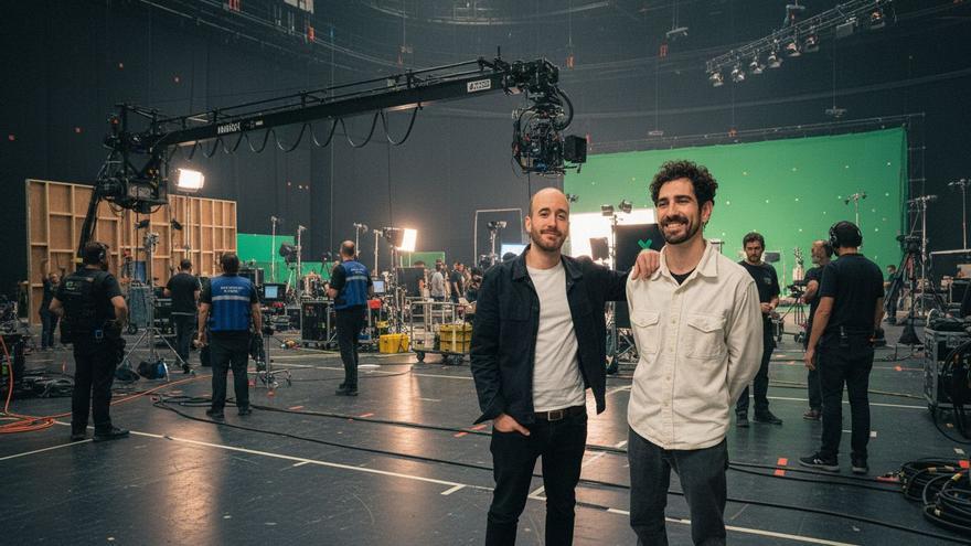 Carlos Batlló i Jona Jaraba, cofundadors i directors creatius de la productora audiovisual Karabot (el fons ha sigut generat amb IA per a l’ocasió). /