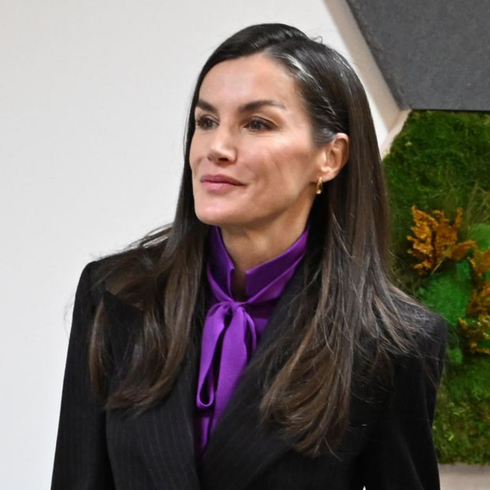 Letizia, amb una brusa morada de gran llaç al coll. /
